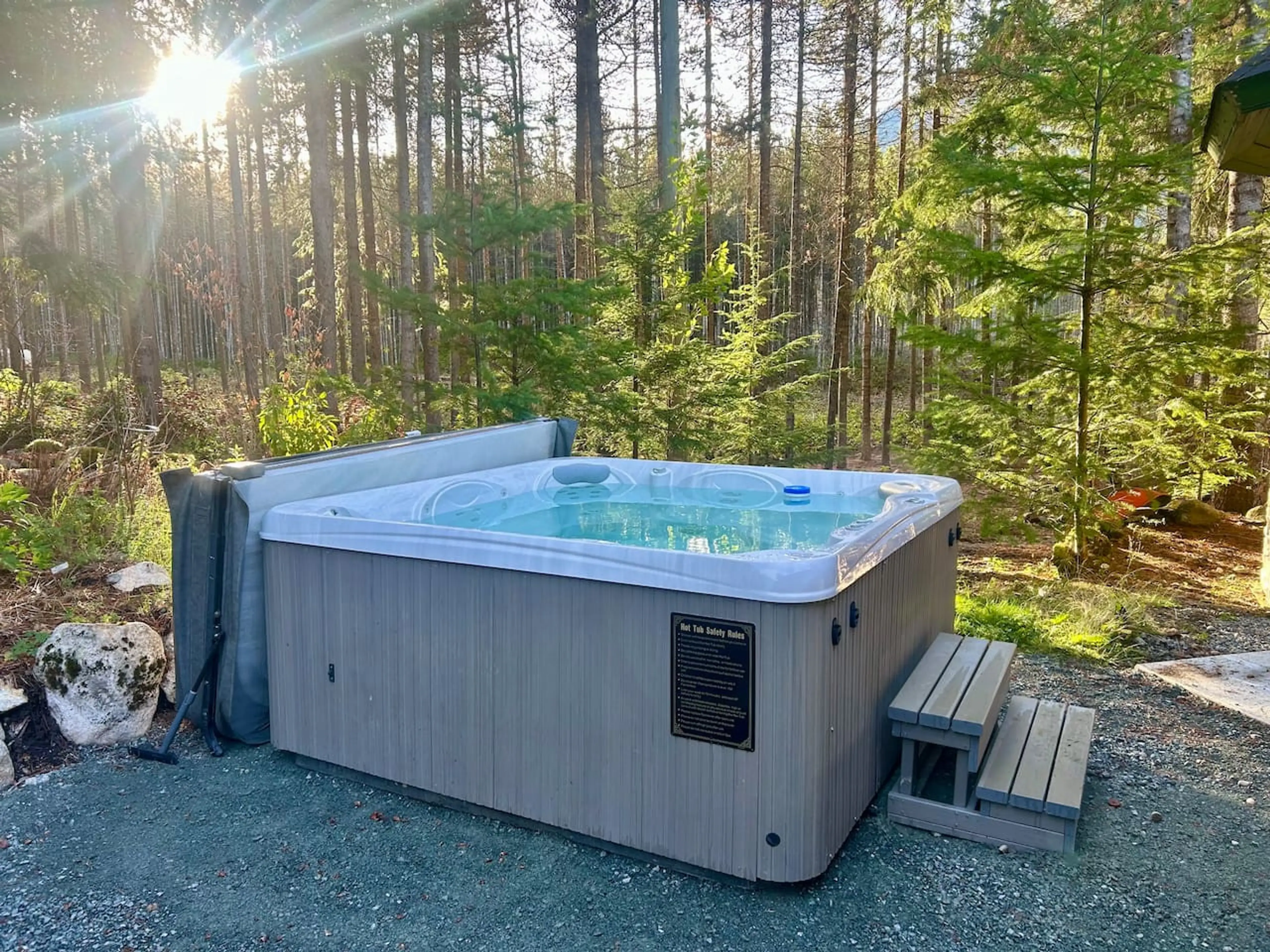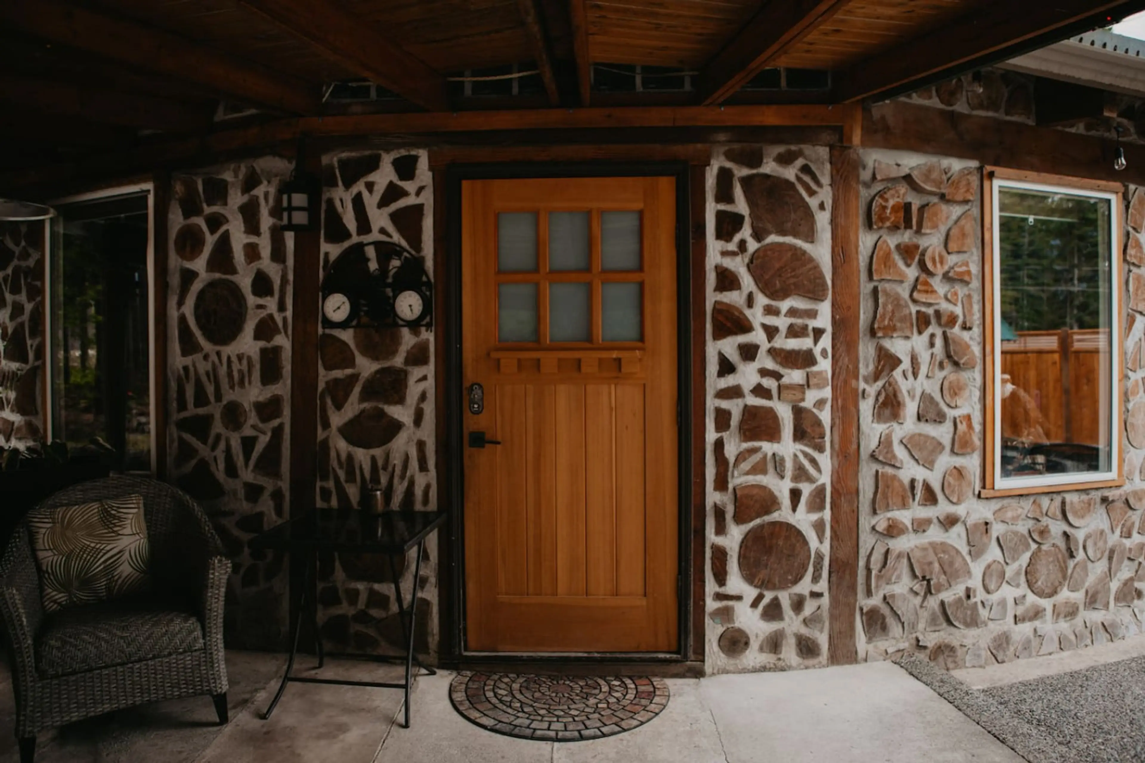 This cosy post and beam circular cabin is the closest airbnb to Chilliwack lake and Lindeman Lake hike. A 2 foot diameter tree section is the centre post of the space. The property is situated directly off the main road but very private neighbouring open area crown land to explore. Outside there i...